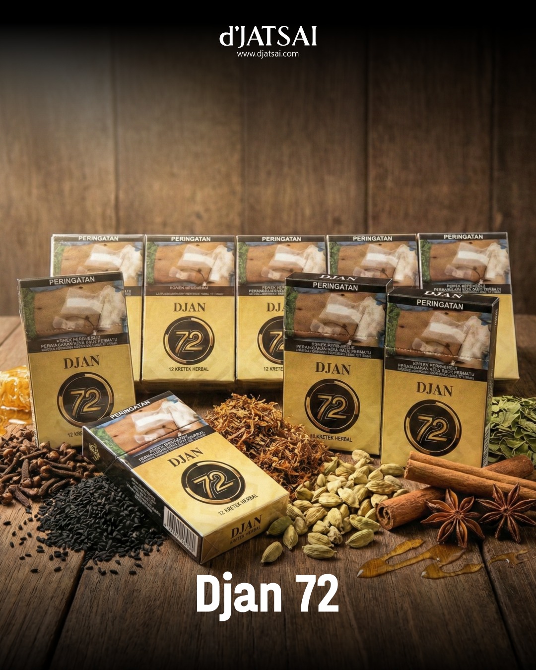 Djan 72 isi 12 batang, merupakan herbal hisap dengan 21 rempah, diproses dengan proses alami tanpa saos tanpa kimia, makin lama makin nikmat tidak bikin ampek di dada.