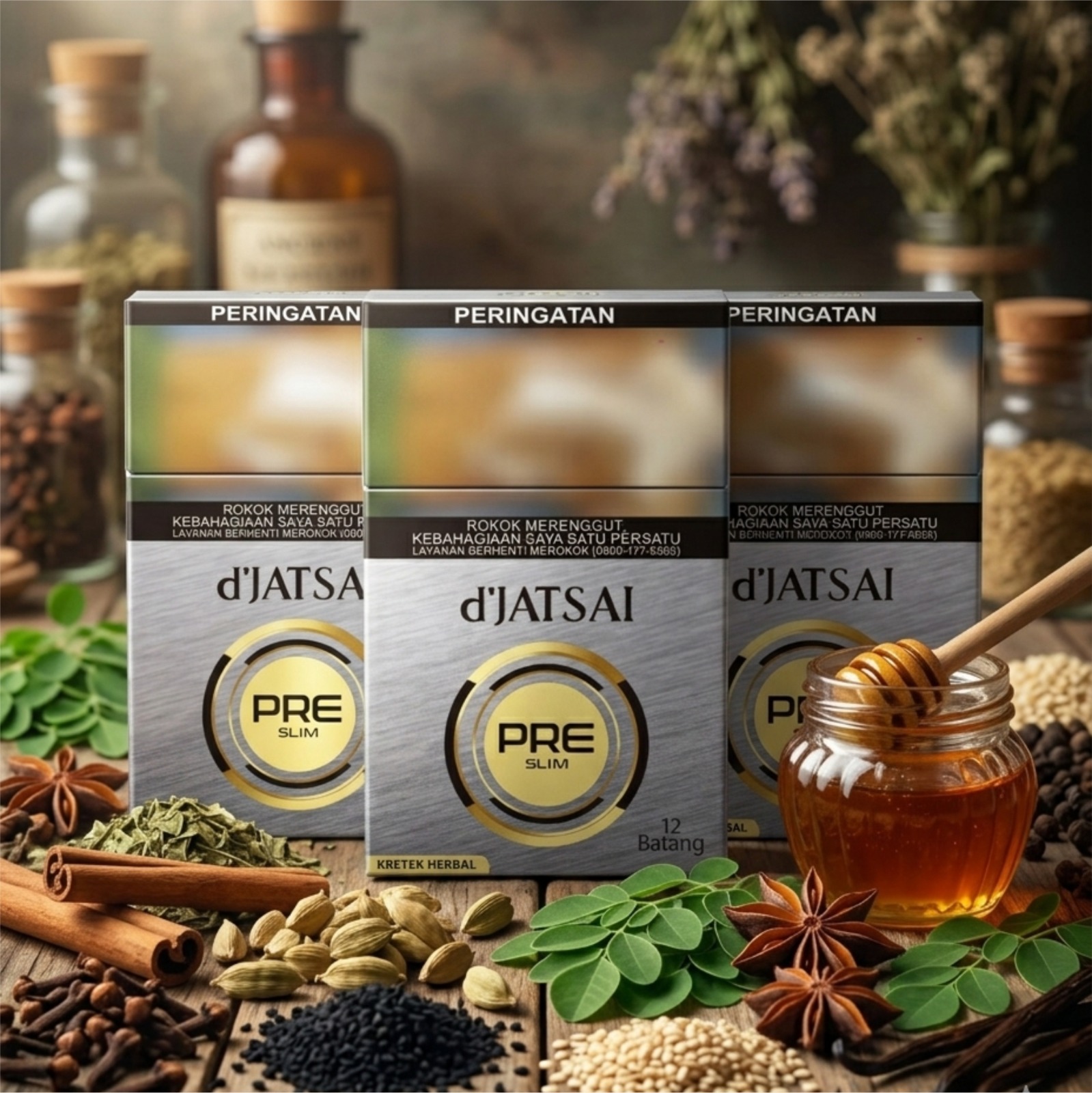 Djatsai PRESlim isi 12 batang, merupakan herbal hisap dengan 21 rempah, diproses dengan proses alami tanpa saos tanpa kimia, Aroma Nyaman Asam Lambung Aman